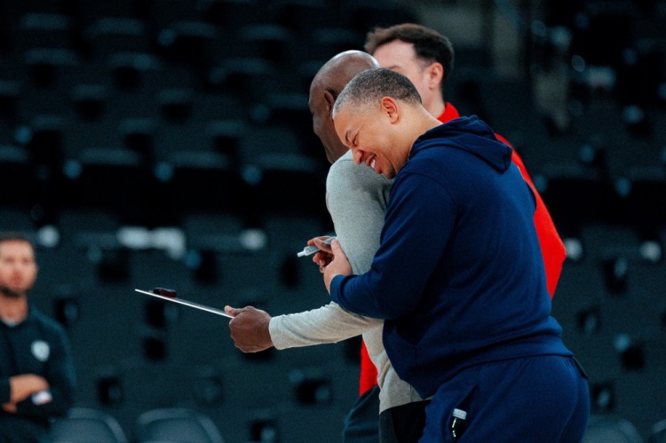 氛围太好了!快船官推晒训练照:全员面带笑容 小卡两次上镜