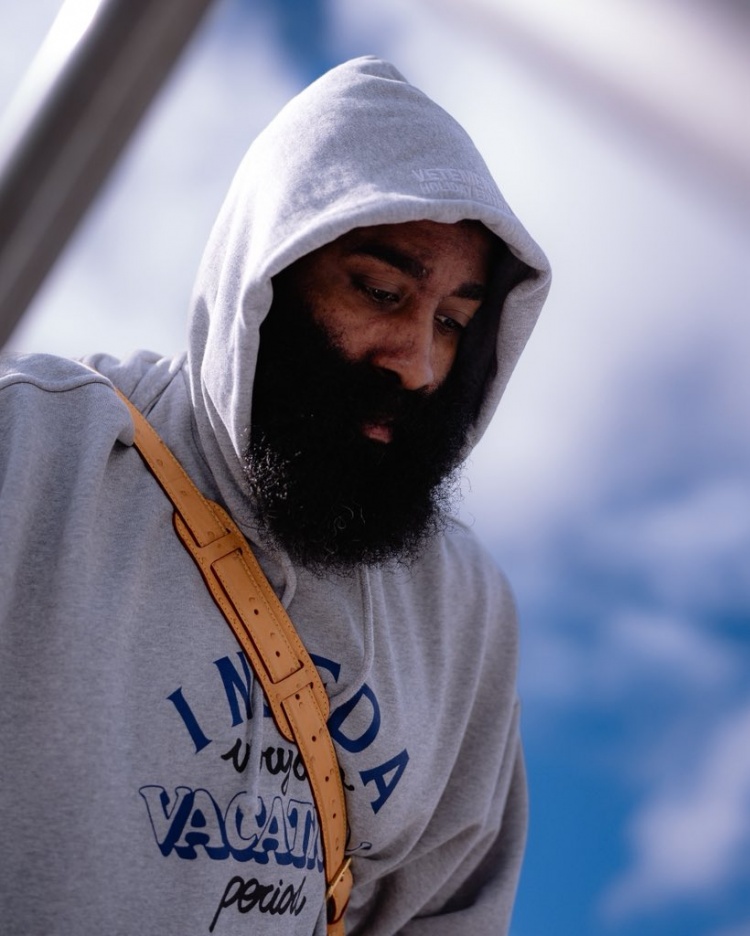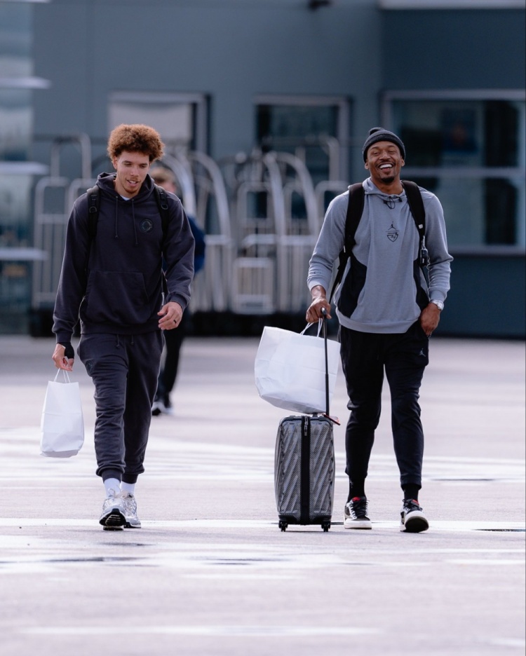 客战国王!快船晒登机照:小卡哈登穿卫衣亮相 科林斯耍酷
