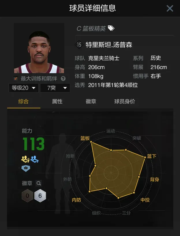 第八位特里斯坦汤普森,当前满突身价两千多万,解锁双篮板动画,而且还具备一定拉开空间的能力,可惜短板也比较明显,模型一般,护筐差,体力也只能打两节比赛时间time。