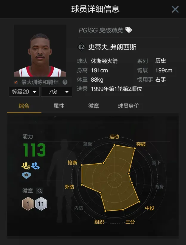 第四位史蒂夫弗朗西斯,当前满突身价三千多万,突破灌篮数值轻松过线,爆发速度快,终结能力强,体力可以支撑打三节比赛时间time,是不错的平民五外历史持球手。