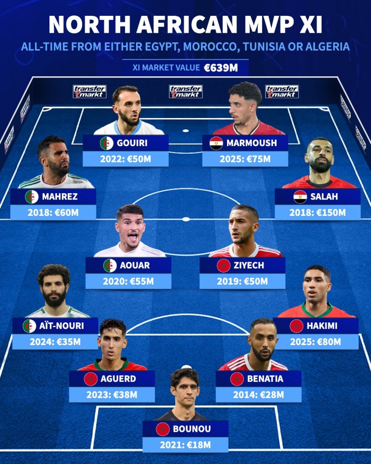 北非历史身价更高阵容:萨拉赫领衔,阿什拉夫、马尔穆什在列