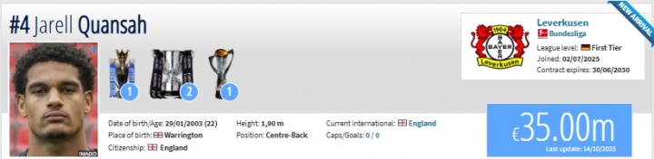打出身价!英格兰中卫宽萨身价暴涨75%,到达3500万欧生涯更高