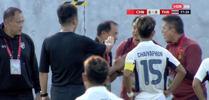 什么剧情?泰国队换人出状况,与裁判沟通,中国队也过来调解