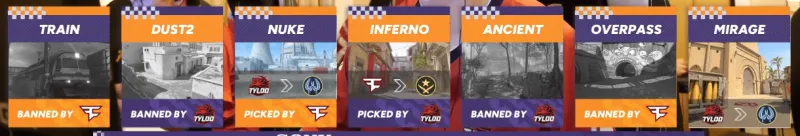 TYLOO禁用Ancient,FaZe禁用Overpass