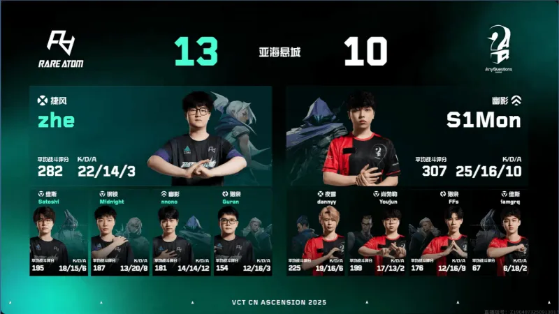第二十一回合:双方维斯同时开大长枪化手枪,zhe标配双杀破点助RA拿下赛点