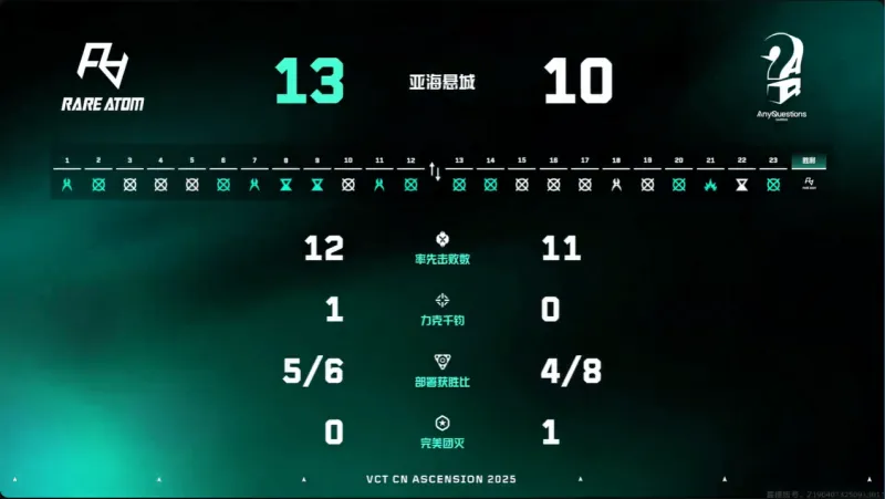 第十回合:AQ捕捉到RA防守薄弱的破绽直扑B点,两枪定局清空防守者,后续稳守包点成功阻断回防