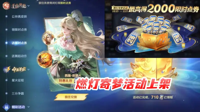 这次的限时点券叫做燃灯寄梦活动,和之前西施皮肤上线时推出的限时点券活动一样。