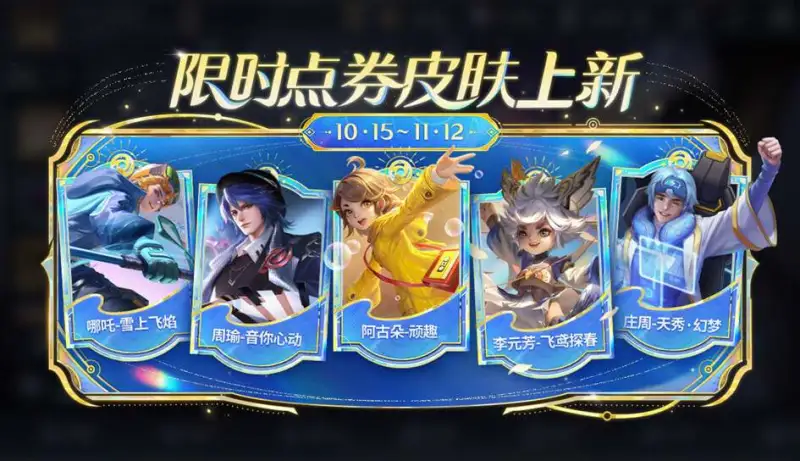 除此之外,还有三款史诗皮肤也加入了限时点券商城,分别是哪吒的雪上飞焰、阿古朵的顽趣、庄周的天秀幻梦。