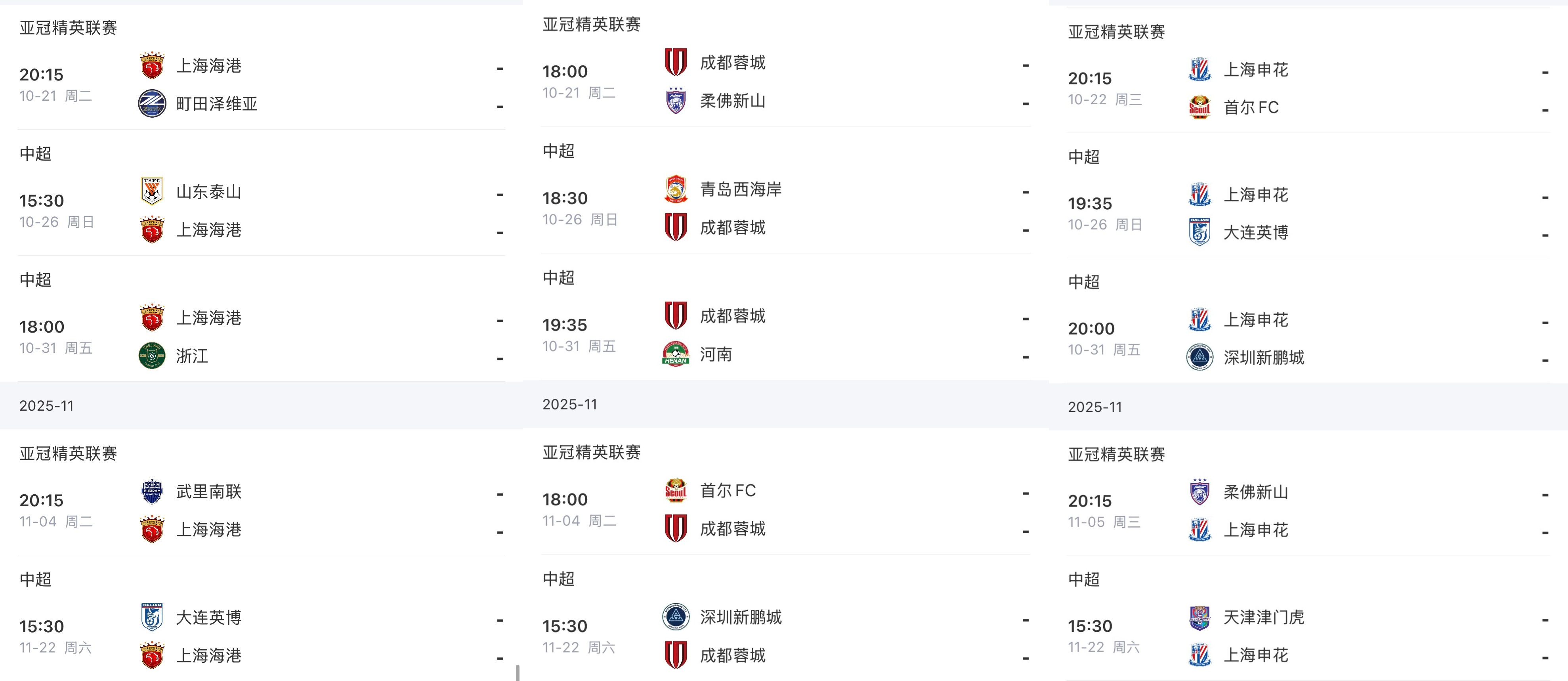 海港打泰山浙江英博 蓉城打西海岸河南深圳 申花打英博深圳津门虎