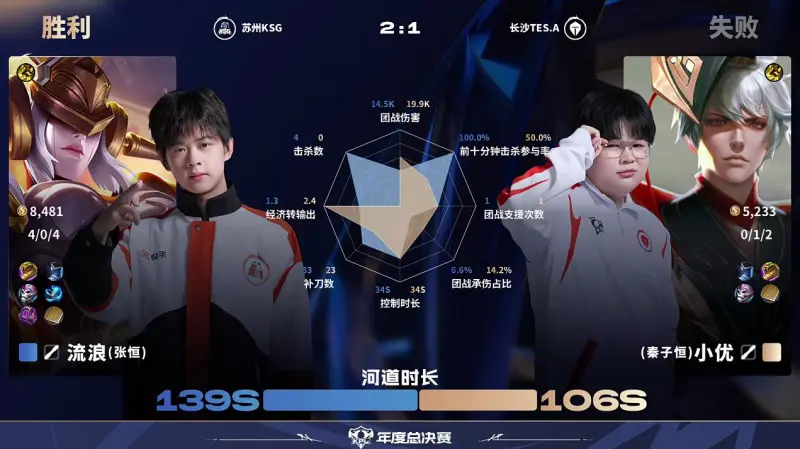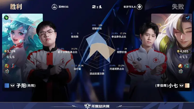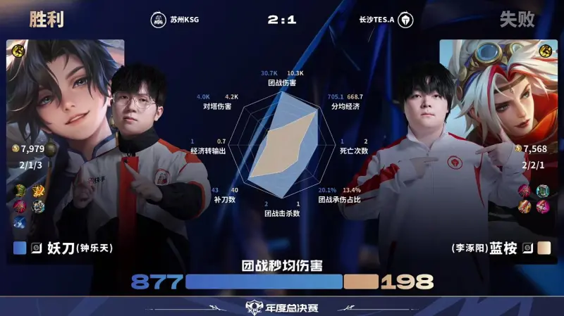 [雷火官网]KSG/TES第3局数据对比:妖刀孙权几乎包围蓝桉戈娅