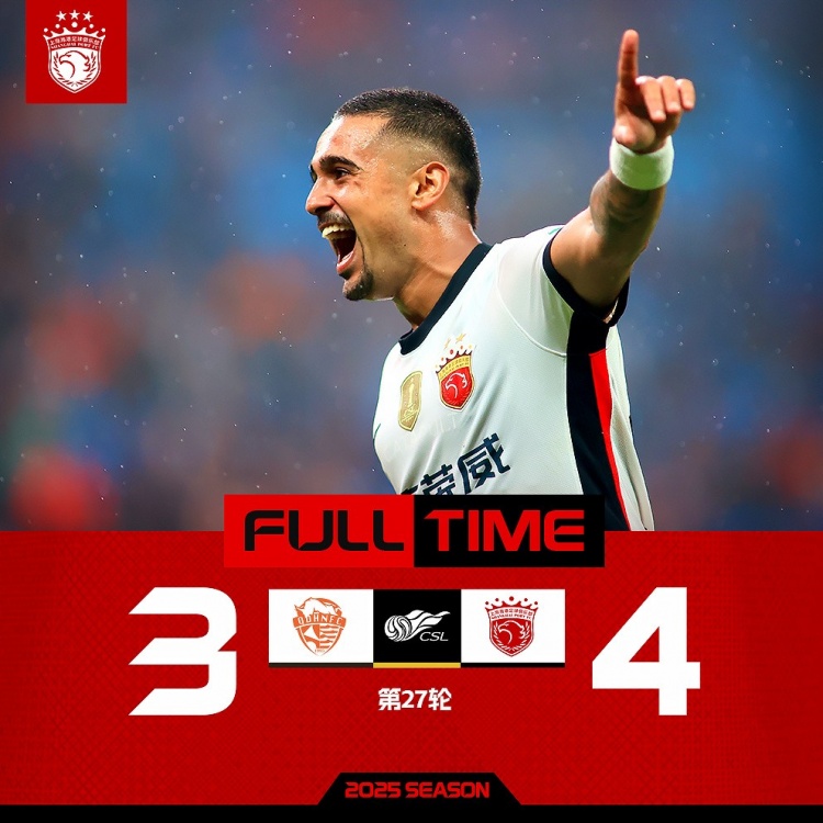 2025华润饮料中超联赛第27轮,青岛海牛3比4上海海港。比赛第11分钟,主队兰克尔·泽破门。第14分钟,李帅助攻加布里埃尔扳平比分。第31分钟,维塔尔中场挑传,莱昂纳多挑射得手。第37分钟,兰克尔·泽又打入一球。第40分钟,莱昂纳多大禁区线前大力抽射打进世界波。半场结束,海港队3比2领先。易边再战,颜骏凌数次奉献关键扑救。比赛尾声,海港队的换人见效,替补登场的李新翔右路内切推射破门。伤停补时阶段,宋文杰为主队扳回一球。最终,海港队客场4比3战胜海牛队。感谢与我们一同战斗的海港远征军,以及在电视机前为球队加油的球迷朋友们。下一场比赛,海港队将于10月21日(周二)回到主场迎来与町田泽维亚的亚冠精英联赛第三轮比赛。