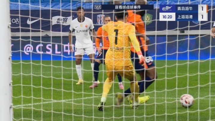 假摔!颜骏凌出击兰克尔-泽倒地,主裁看VAR后判定兰克尔-泽假摔