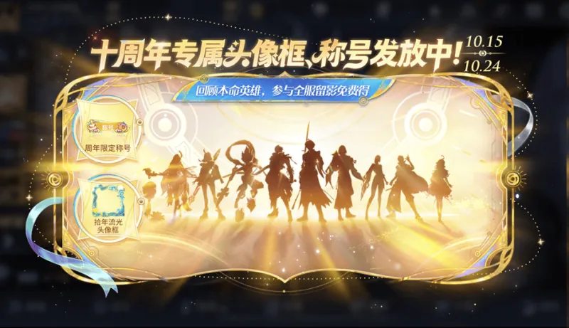 英雄拾忆活动即将上线,参与领周年限定称号、头像框活动时间time:10月15日逐步开启-10月24日23:59