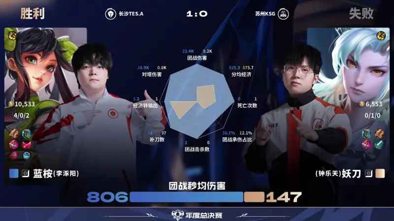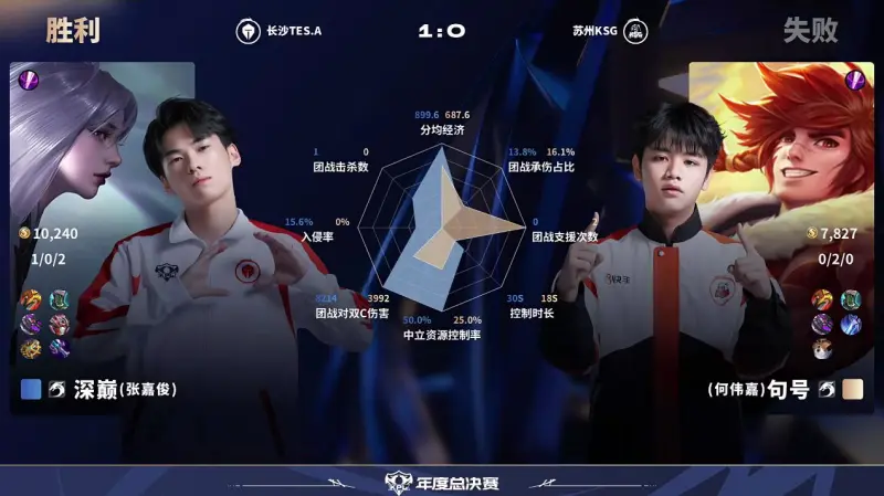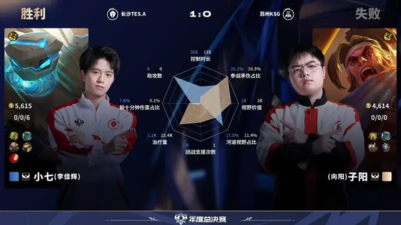 [雷火官网]TES/KSG第1局数据对比:蓝桉孙尚香全面碾压妖刀敖隐