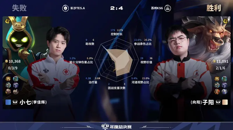 [雷火官网]TES/KSG第6局数据对比:子阳牛魔几乎包围小七太乙真live人