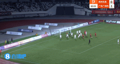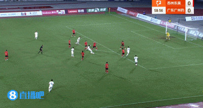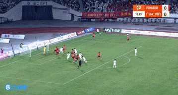 第25分钟,广州豹右路角球制造头球攻门的机会,苏州东吴门将刘宇用脚将球挡出。↓
