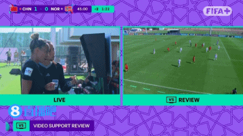 第47分钟,中国U17女足获得点球!陈俊吉禁区抢头球时被埃林森放倒,裁判经过var回放判罚点球,周欣怡主罚点球破门,中国U17女足2-0挪威U17女足。