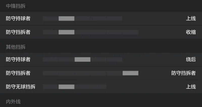 进攻站位方面不用太在意,触发得较少,如果外线都有不错的投射能力,可选侧翼;如果大部分外线投射能力较差,而内线挡拆能力不错,可选Flip Push(进攻站位触发后只会跑套组本身的战术,不会影响球队战术板的触发)