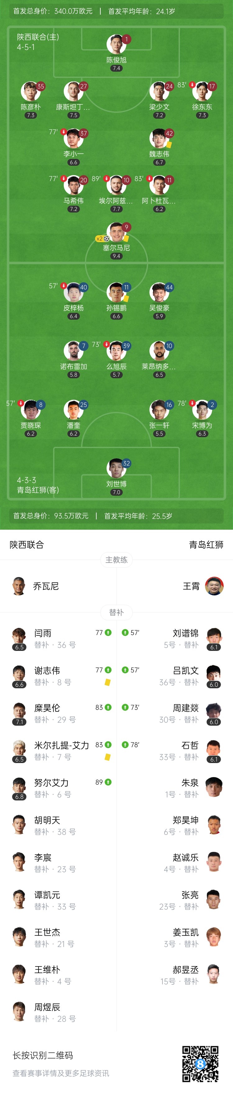 第36分钟,梁少文禁区外左脚一脚贴地斩,门将扑球脱手,塞尔马尼跟进一脚补射破门!陕西联合1-0领先青岛红狮↓