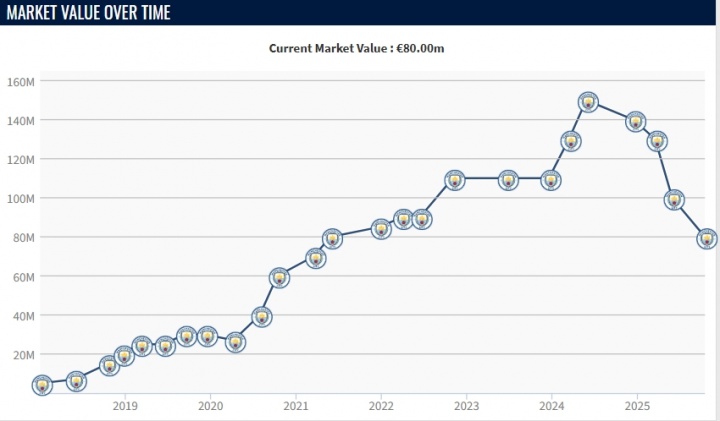 这表现才8000万❓福登策动2球赛季5球3助,1年身价跌了7000万😬