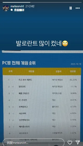 [雷火官网]瓦在韩国网吧热度第二,Meteor:打瓦的挺多的啊🙄