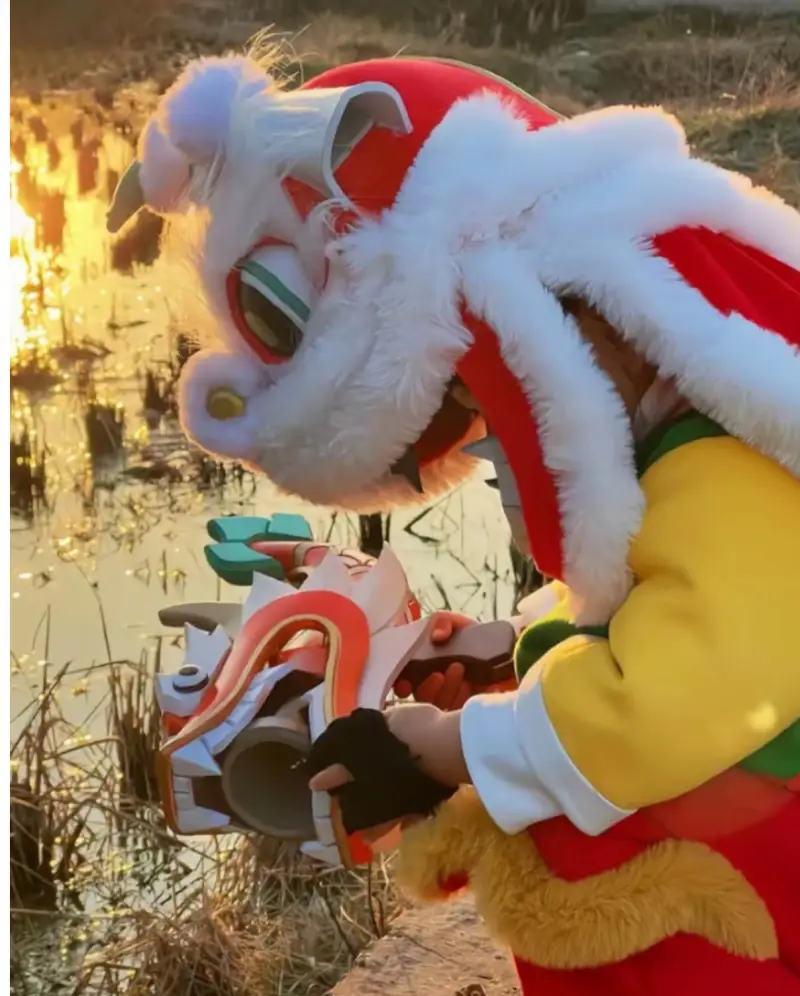 她cos的这一款皮肤是鲁班七号的战令皮肤,但是却是很祥瑞的,因为穿着很喜庆,手中还拿着对联,不仅很可爱,也非常的符合新年。能看到瑶一瑶这个小表情,十分的得意,她的脸肉嘟嘟的,帽子戴着,感觉都装不下她的脸,简直太可爱了!