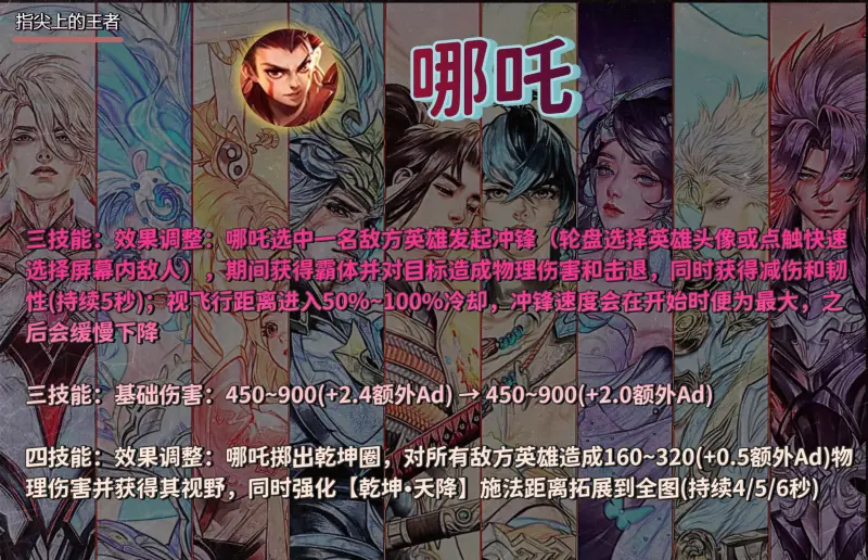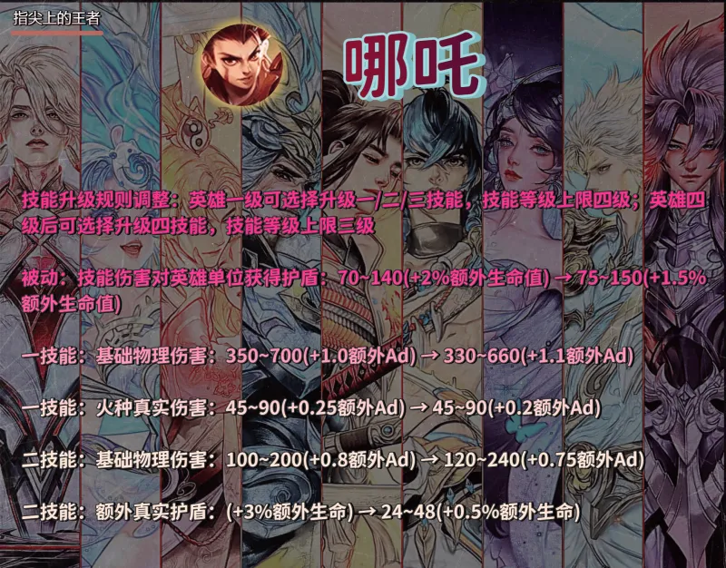 哪吒本次哪吒的调整算是重头戏,上次重做后没多久就回退了,这次保留了部分机制的基础上,全技能都有改动。