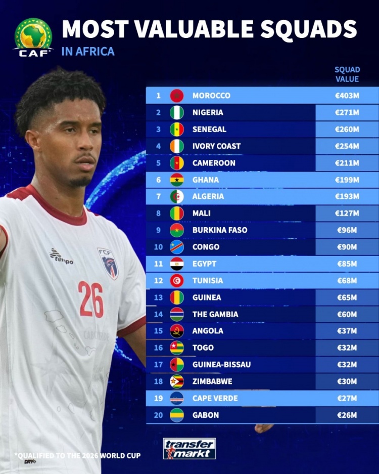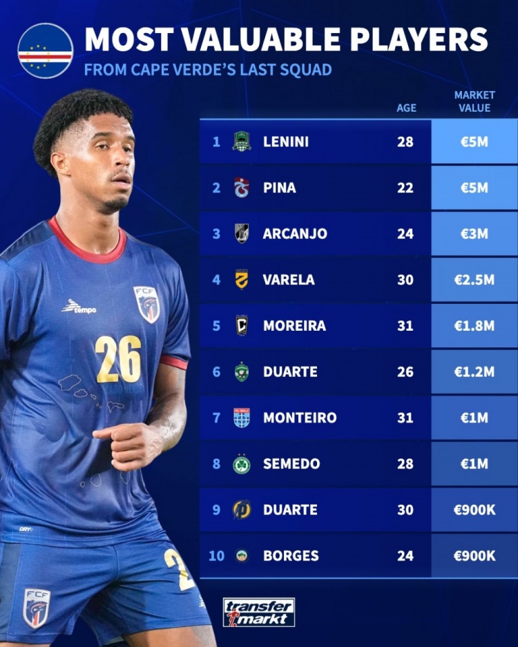 冷知识:佛得角FIFA排名70比国足高24位 身价2720万欧是国足2倍多