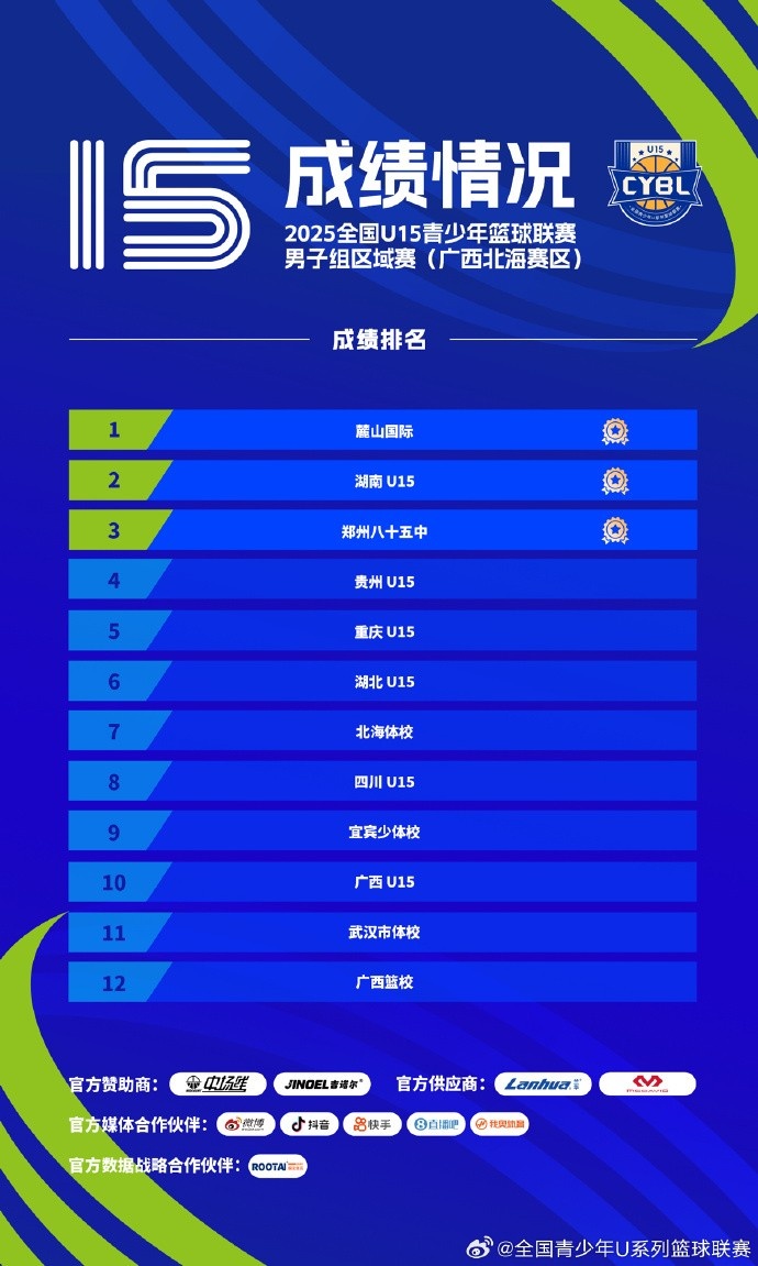 全国U15男子组区域赛圆满收官 各赛区前三名球队成功晋级决赛阶段