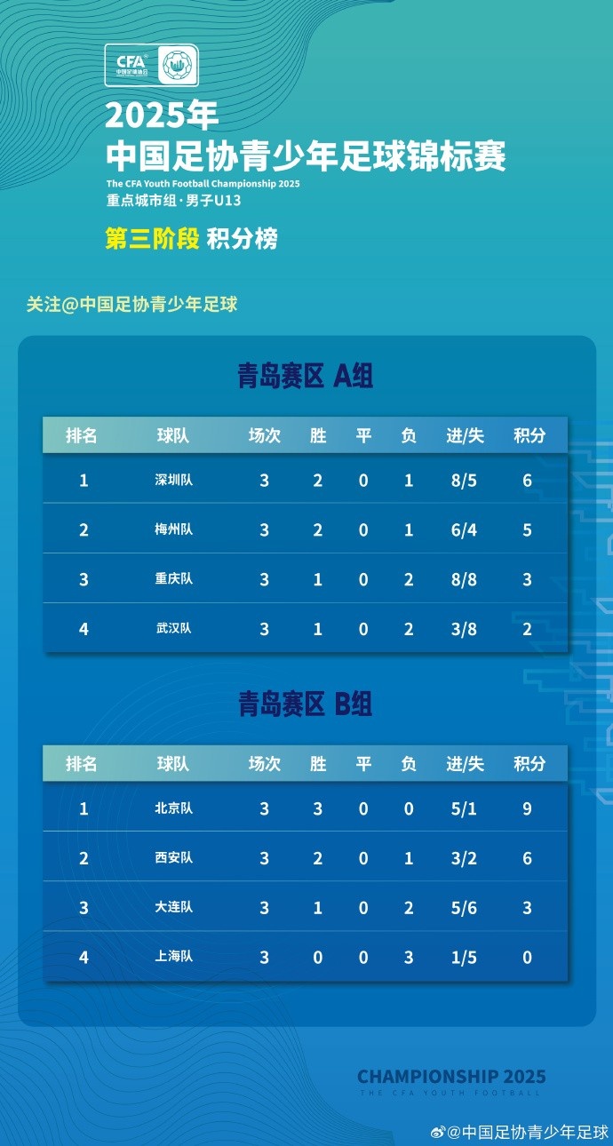2025中青赛U13组:深圳队、梅州队、北京队、西安队晋级四强