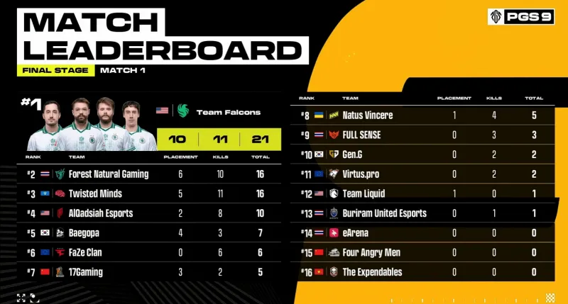 雷火官网10月17日讯 P.GS9总决赛之一日比赛结束,本日赛况如下。