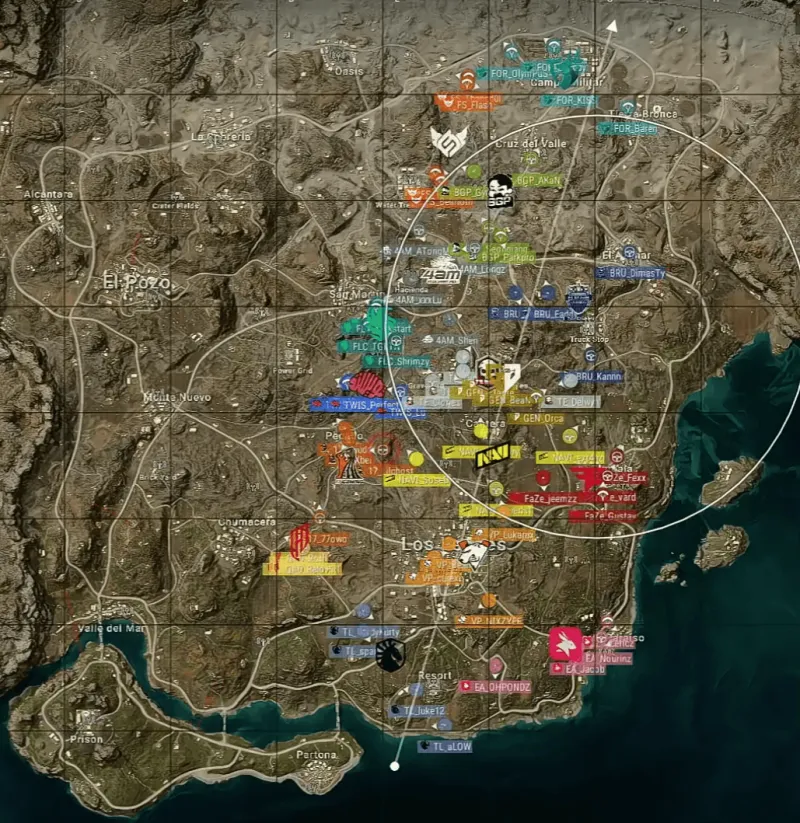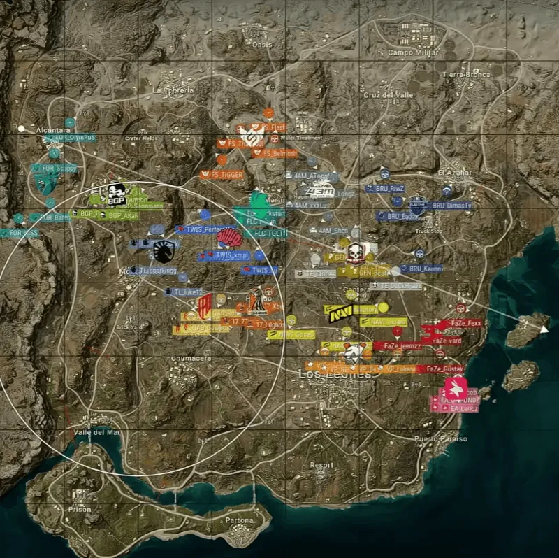 阶段7,TE打掉BGP独狼。4AM独狼被蓝圈带走,BRU向TWIS进攻,1换2,打掉对手。随后送给蓝圈,TE3清1FAZE独狼,完成吃鸡。