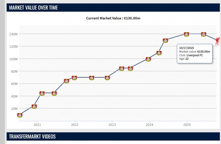 攻击型中场维尔茨带着极高期望加盟利物浦。这位德国球员的初始转会费高达1.25亿欧元,创下当时英超联赛的转会费纪录,但他的开局并不顺利。在英格兰顶级联赛和欧冠联赛的前九场比赛中,他尚未取得进球或助攻。他的市场估值从1.4亿欧元降至1.3亿欧元。