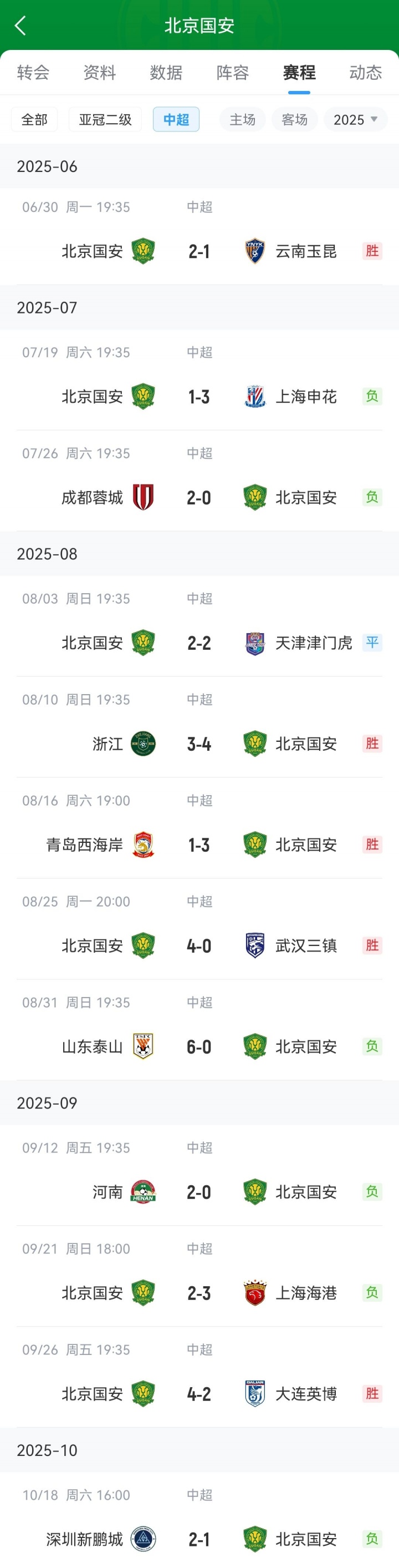 半程冠军 *** 😴国安中超上半程0负领跑 下半程12场吞6负掉队