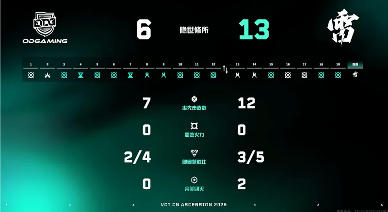 第七回合:XyuS开启大招突破无果,后续TG道具配合默契打出反清,ODG暂停归来依旧未能得分