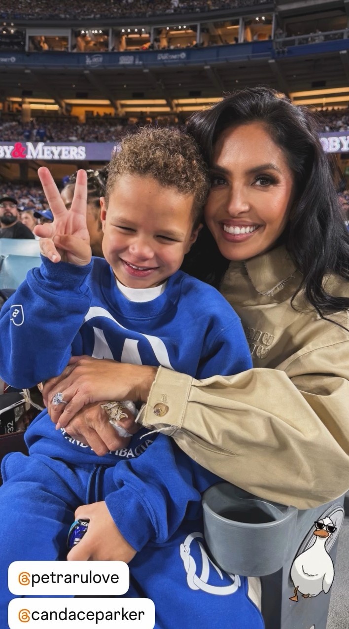 晋级世界大赛!瓦妮莎带俩娃与坎迪斯-帕克一同观看道奇队比赛