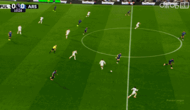 上半场伤停补时6分钟,第45+6分钟,萨卡做球,赖斯跟进射门,打偏了。↓