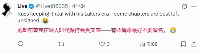 威少拒签湖人球衣?美网友:有些篇章更好别署名 他真的无法接受