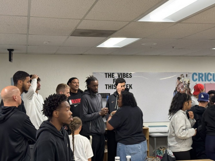 开拓者在当地自我提升中心与孩子们做活动 杨瀚森和利拉德现身
