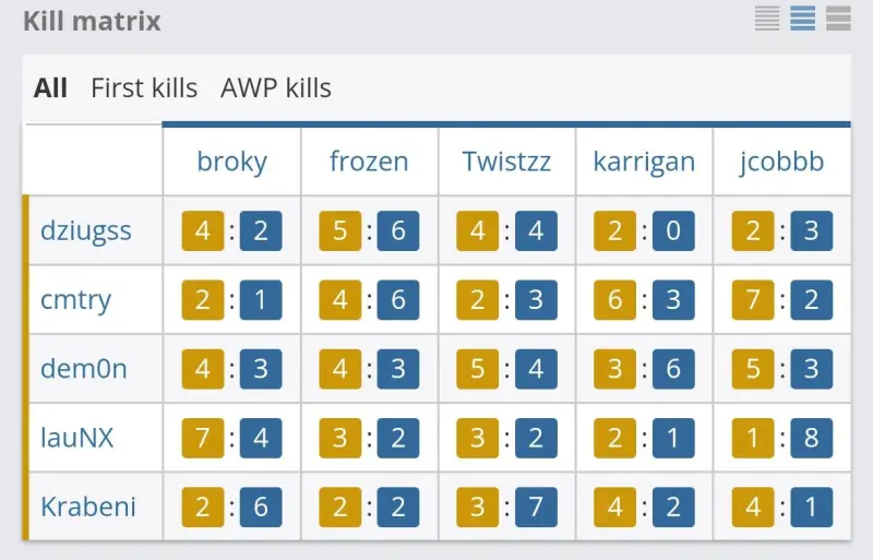 上半场Faze防守方开局,FUT进攻A区,broky混烟拿到击杀,Twistzz绕后击杀,成功拆包,Faze拿下手枪局。下一把FUT强起失败,第三局进入ECO局。第四局,Krabeni经济局杀四剩一仍无能为力,Faze连拿四分。第七局,FUT慢打A区,2v2残局,broky穿箱击杀包匪,Faze再下一城。第十局,FUT控中路,剩余时间time30秒夹击拱门,Faze接住攻势,9-1领先。上半场最后一局,Faze中路前压,broky MP9双杀,karriganB2楼前压被击杀,FUT转头进A,拿下上半场最后一分。